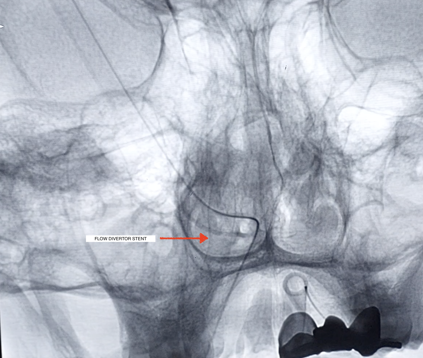 Giant Supraclinoid ICA Aneurysm - Coiling with Flow Divertor